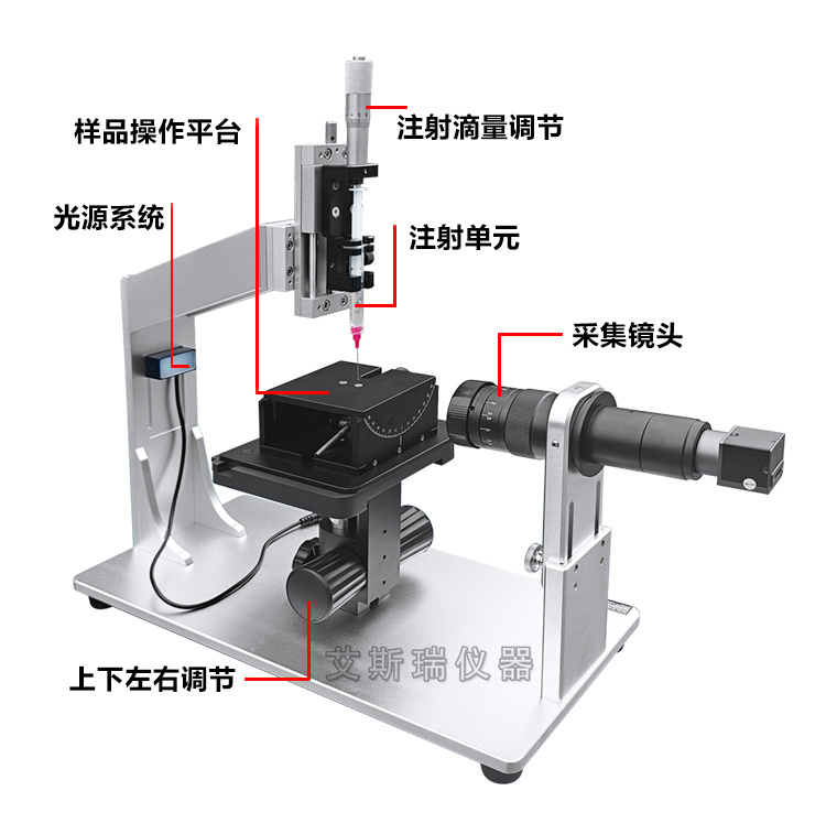 該儀器采用現代化工藝制造,儀器采用先進的專用CMOS數字攝像機,配倍高分辨率連續變倍顯微鏡和高亮度與穩定性好的工業光源,搭配三維樣品臺,可進行工作臺上下、左右、前后等方向移動。實現微量進樣及上下、左右精密移動。同時還設計了伸縮桿結構工作臺,能適應在不同用戶材料厚度加大的場合。儀器框架可以根據式樣的大小適量調節,擴大了儀器的使用范圍。軟件搭配修正功能,測試多次后的結果可以同時保存在同一報告下,能讓用戶更好的對材料數據進行管控。該儀器設計美觀大方、操作簡單、符合用戶所需。適用于各種行業測定接觸角的用戶。
